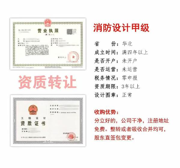 稀缺甲级!干净无经营消防设计甲级公司转让,吸收合并